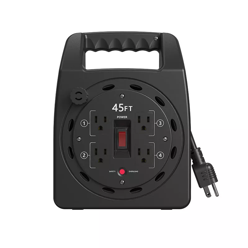 Multifunktionell 4 uttag plastsladdrulle 45 fot med överbelastningsskydd kan användas i scenen inklusive sovrum, vardagsrum och kök.